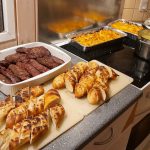 Med ankomst torsdag aften, efter et kort pit stop i Humble Brugs, bare for lige at få den sidste forplejninger med til weekenden, ankom vi til ”hytten” her blev vi budt velkommen af Jørgen ”Pirk”, der havde dækket bord til os alle 11 mand, med en omgang solæg, med sennep, Tabasco og en kølig pilsner, hvilket alle tog godt imod, vi var dog et par stykker der nøjes med den kølige pilsner, men hyggeligt var det, solæggene blev sener suppleret af et par grillpølser med det løse og senere en god kop Irsk kaffe med skum og et stor stykke af Lonnies drømmekage med topping, så ingen gik vist sultende i seng den aften, som hurtigt gik hen og blev sen for nogle.