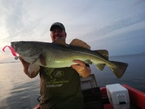 d. 17/7, Jakob Brun, Torsk, 8,5 kg. 93 cm. Langelandsbæltet